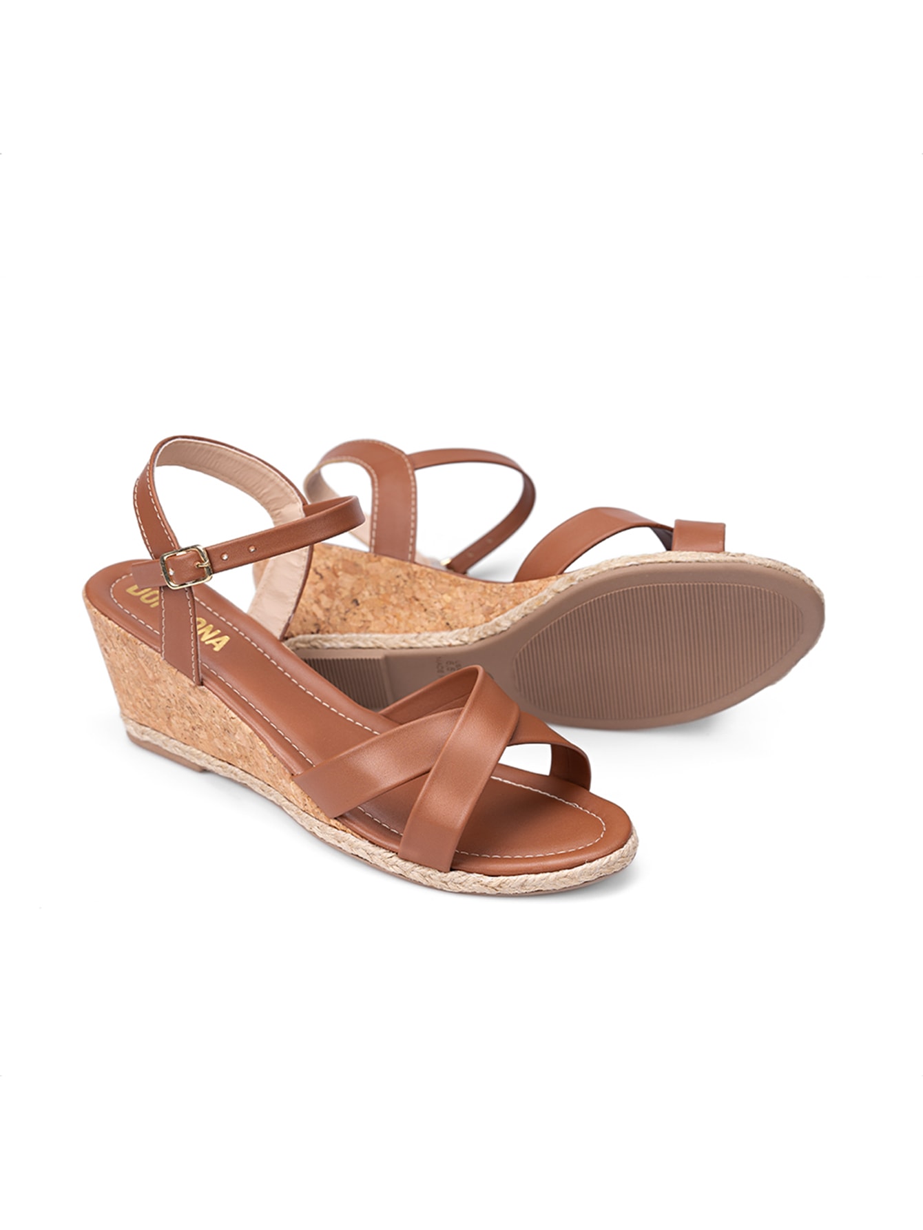 Especial DomidonaSandália Feminina Anabela Salto Cortiça Tiras Simples Caramelo