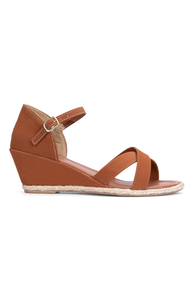 Sandália Feminina Caramelo Anabela Casual Traseira Fechada