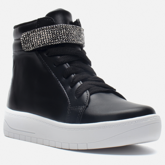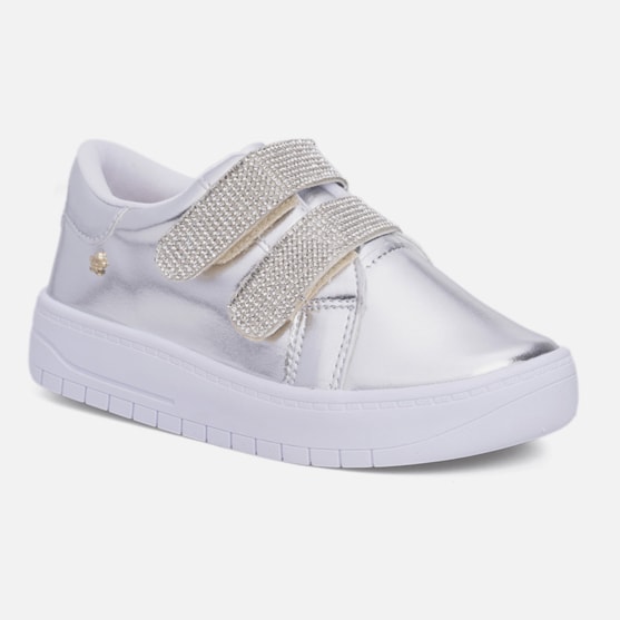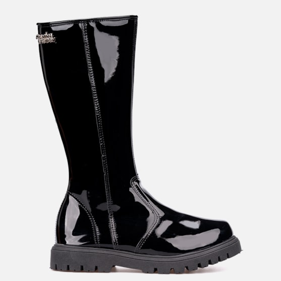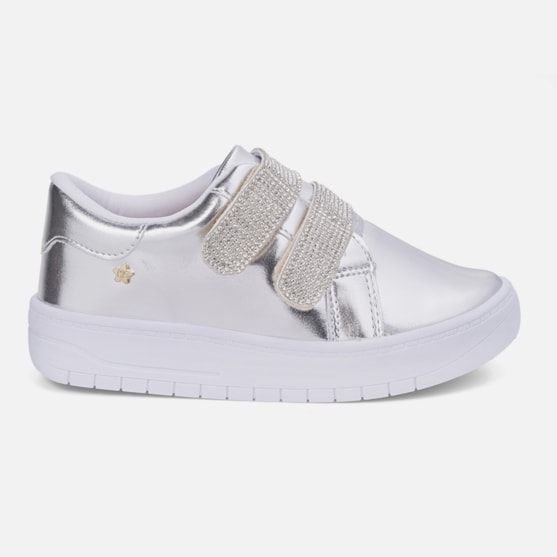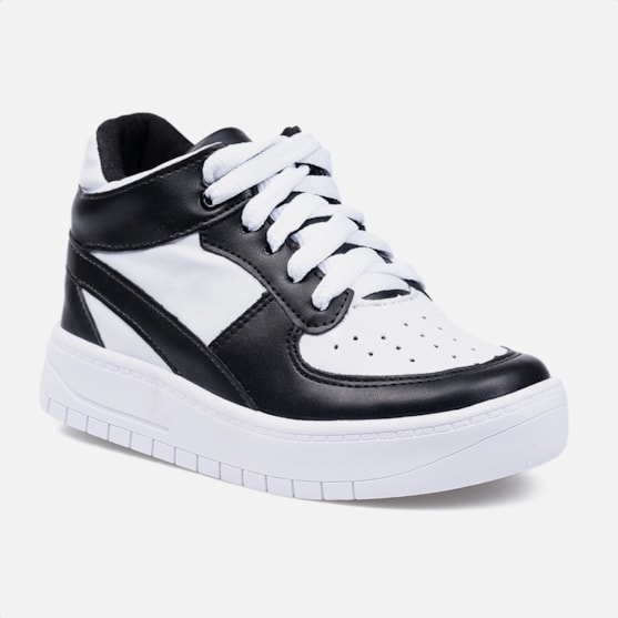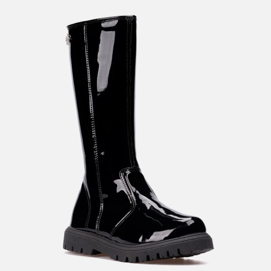 Tênis Infantil Feminino Cano Alto Recortes Com Verniz Brilho Branco