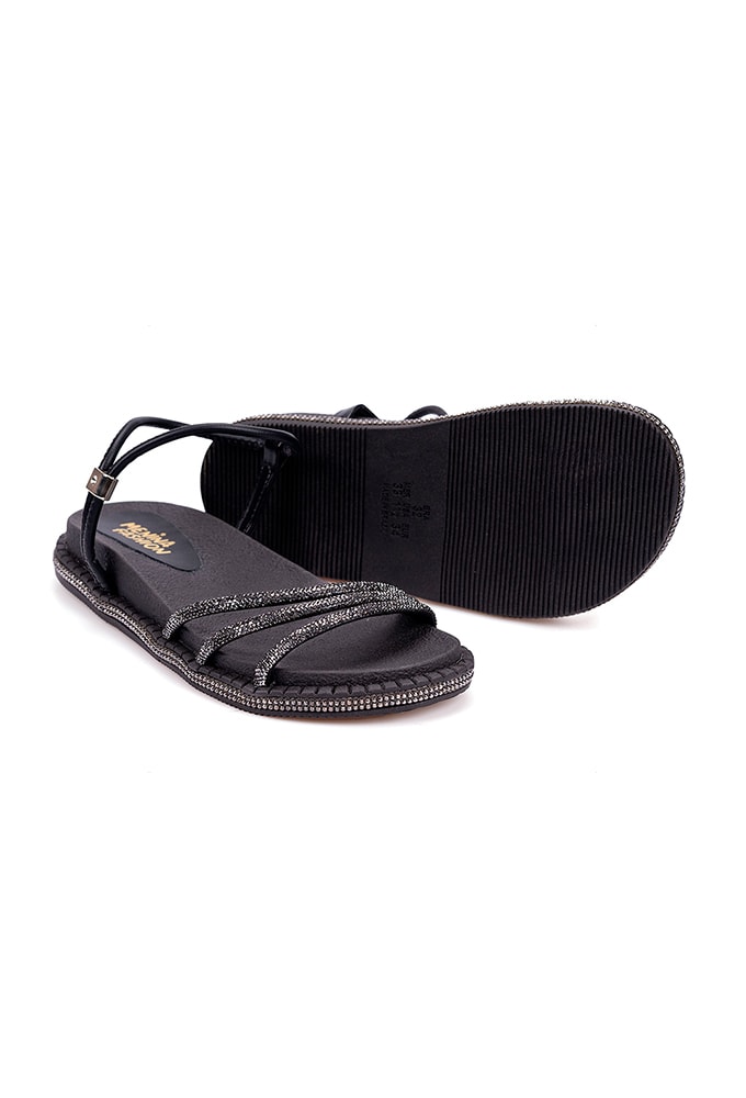 Sandália Feminina Flatform Infantil Calce Fácil Com Strass Preta