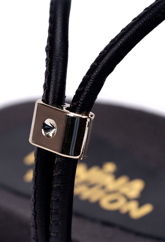 Plataforma elevada, linhas definidas. Esta sandália personifica a harmonia entre moda e funcionalidade. Strass delicadamente dispostos adicionam um toque sutil de brilho, expressando sofisticação de forma minimalista desde a infância.