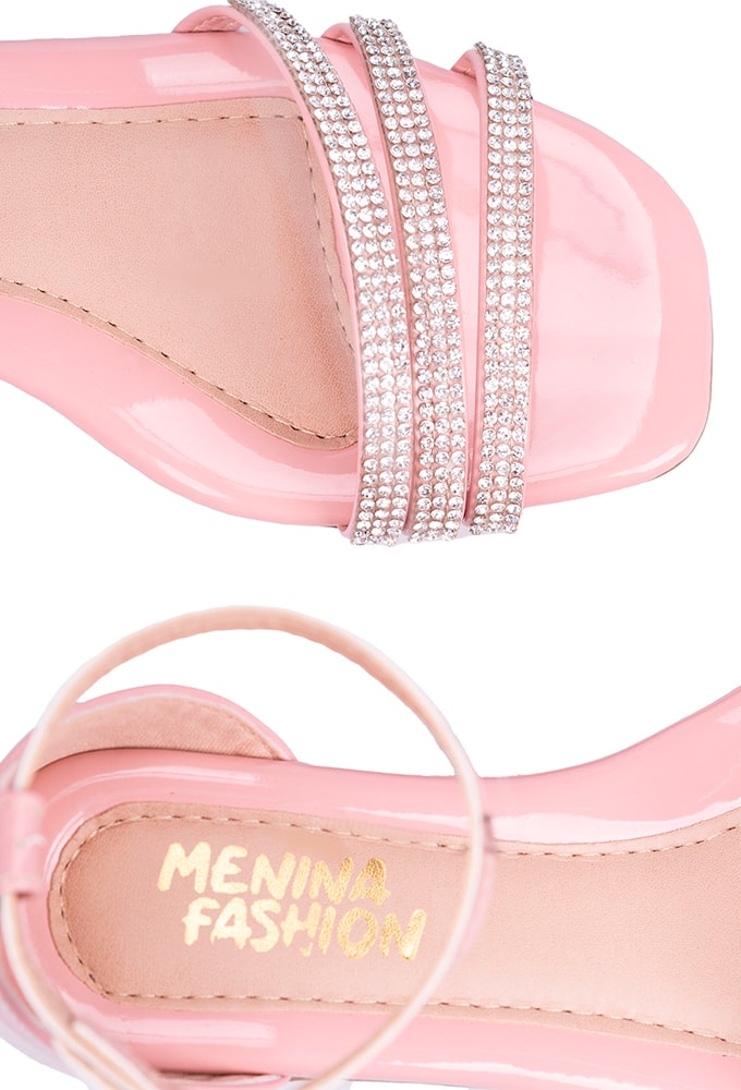 Sandália Feminina Infantil Saltinho Baixo Com Strass Confort Rosa