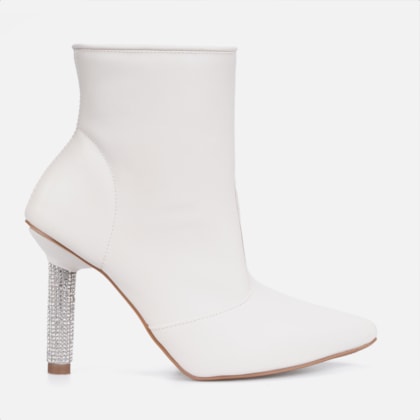 Especial DomidonaBota Feminina Cano Curto Bico Fino Salto Grosso Confortável Off White