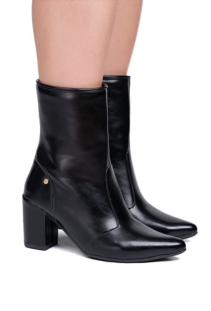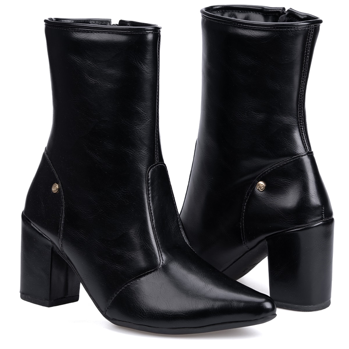 Bota Social Feminina Preta Cano Curto Salto Alto Bloco Bico Fino
