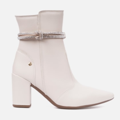Bota Feminina Chelsea Boot Com Elástico Bico Fino Cano Médio Off White