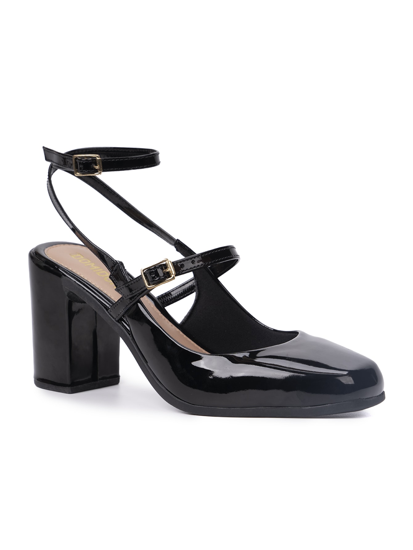 Mary Jane Salto Bloco Com Tiras Calcanhar