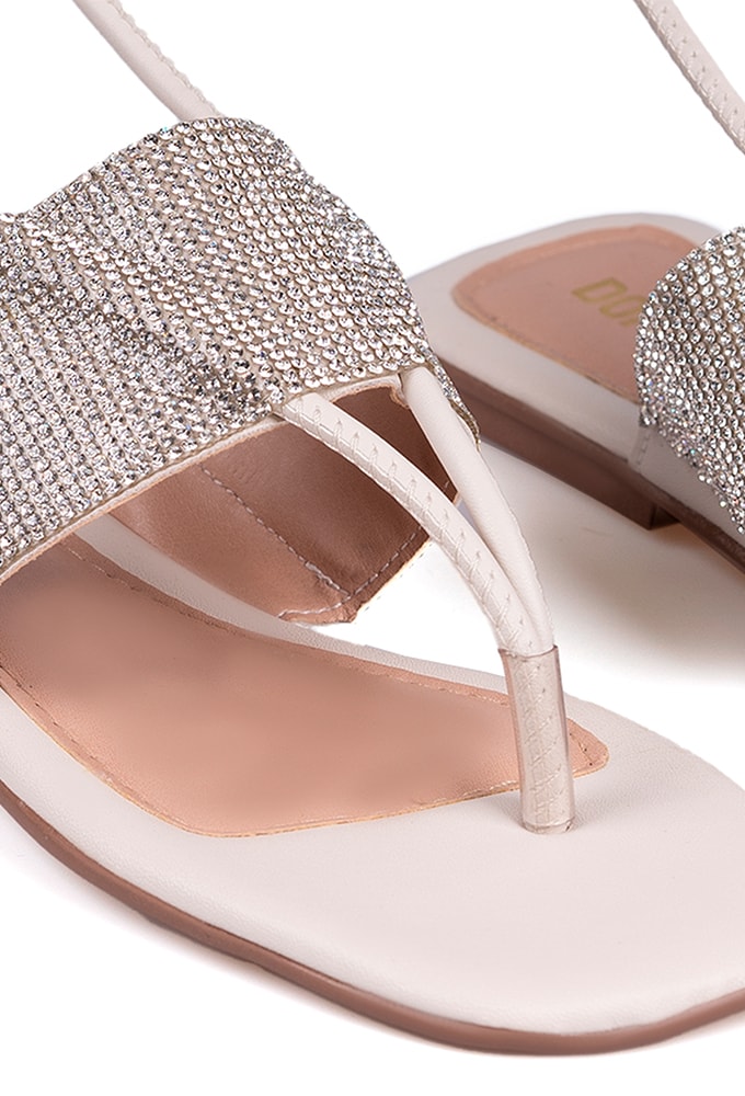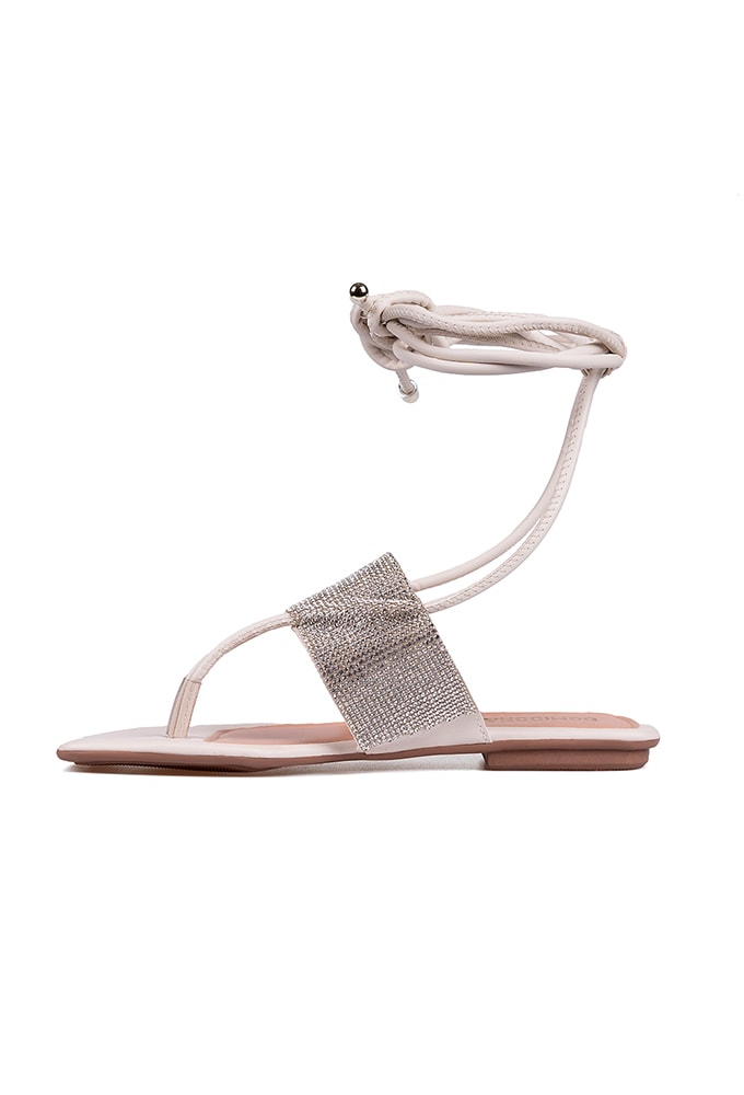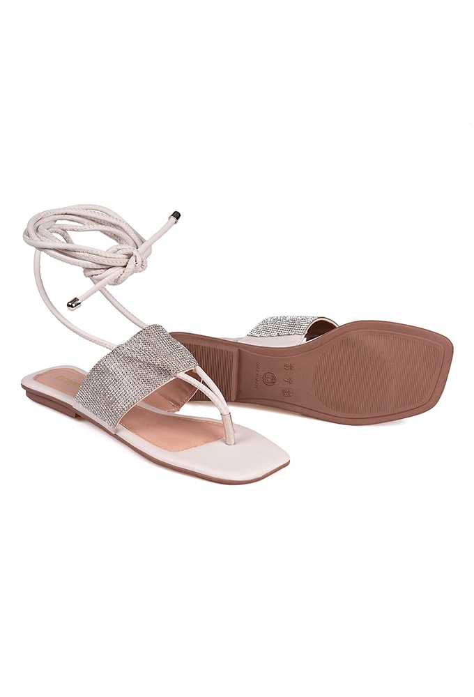 Especial DomidonaRasteirinha Sandália Feminina De Amarração Tira De Strass Off White