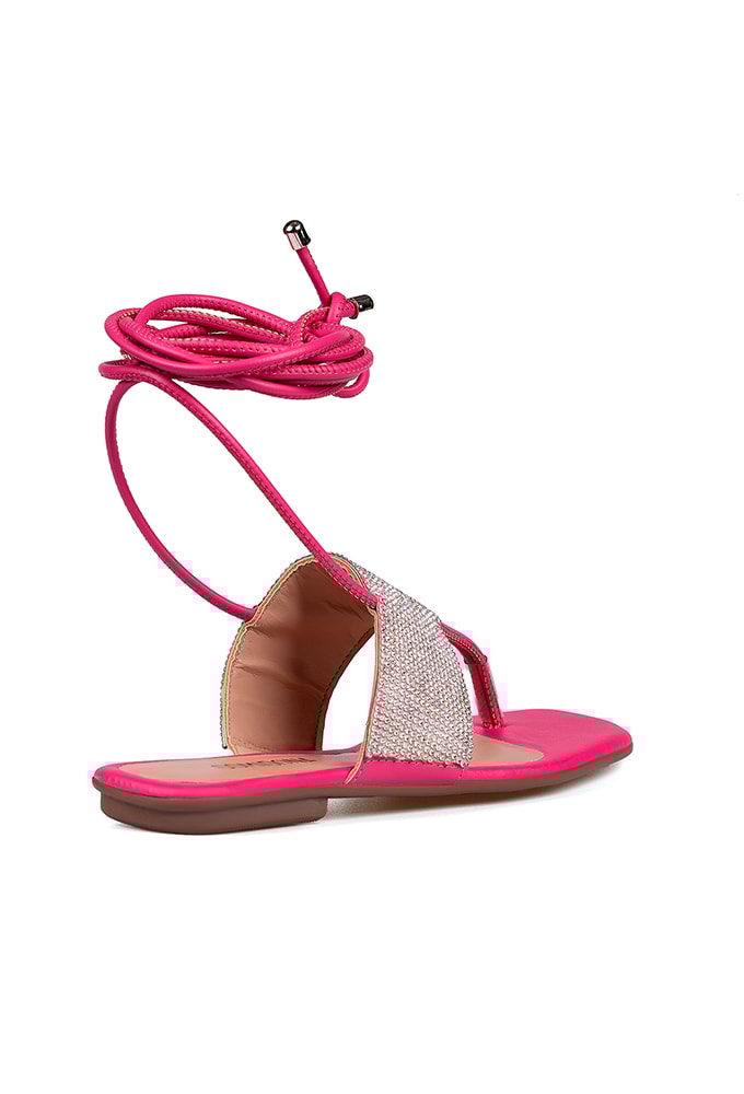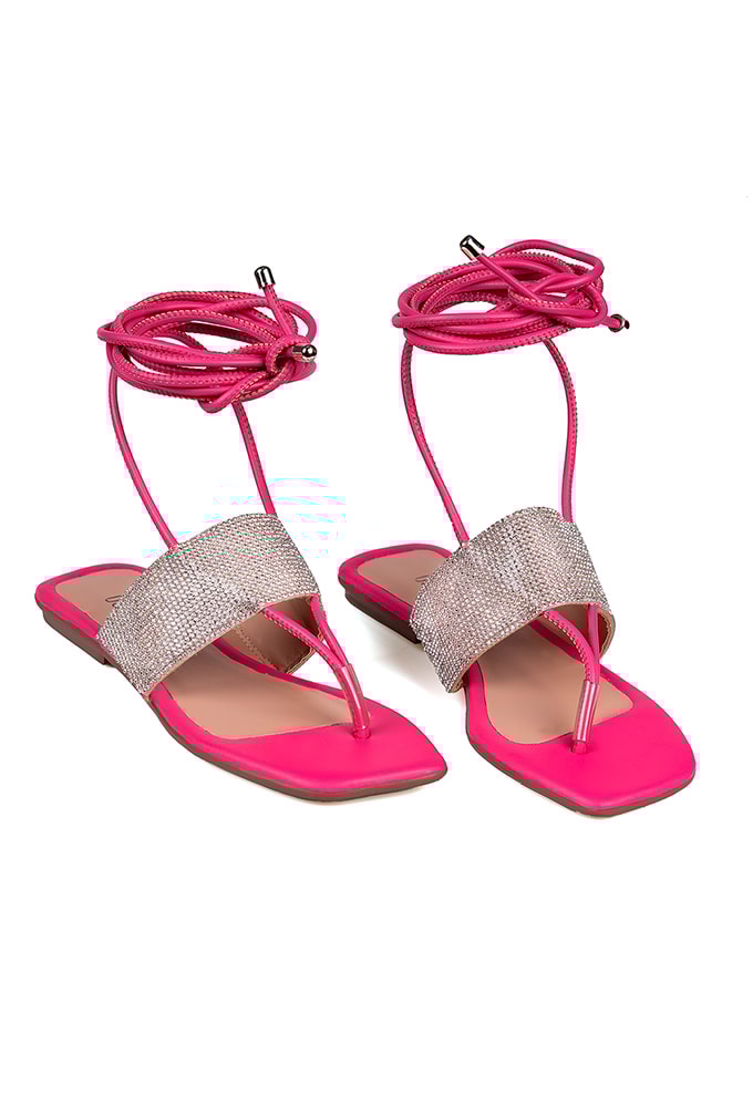 Rasteirinha Sandália Feminina De Amarração Tira De Strass Pink