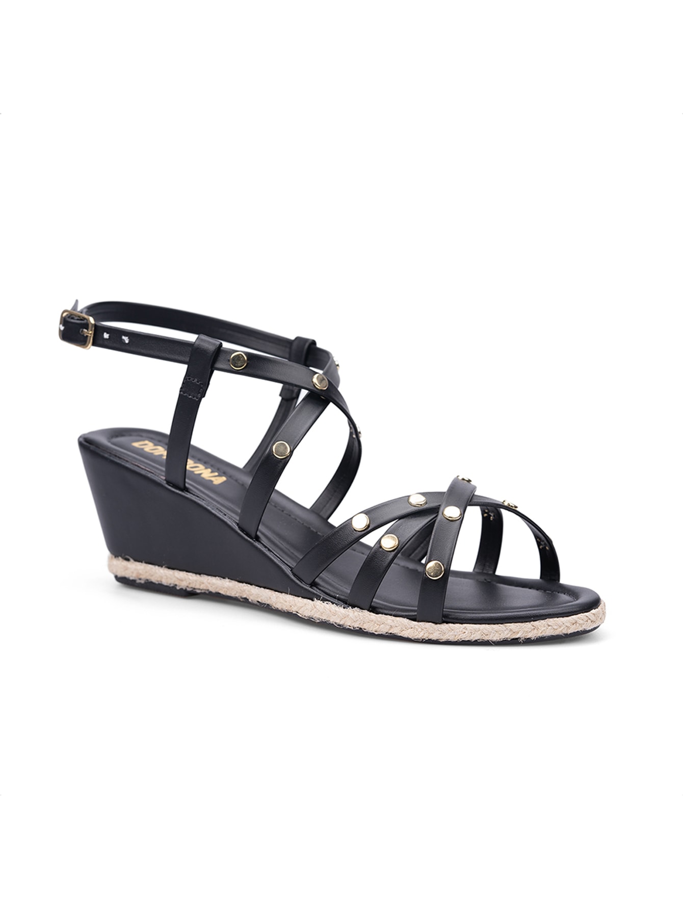 Especial DomidonaSandália Anabela Tiras Com Tachas e Fivela Dourada Preta