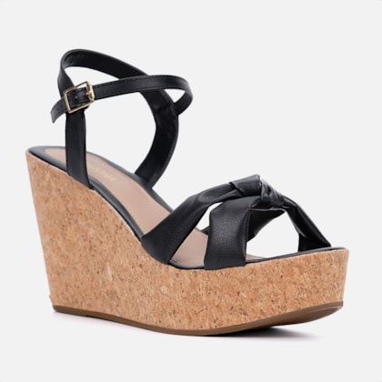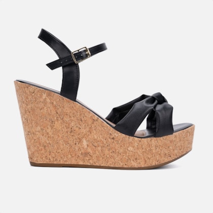 Sandália Feminina Anabela Plataforma Tira Em Laço