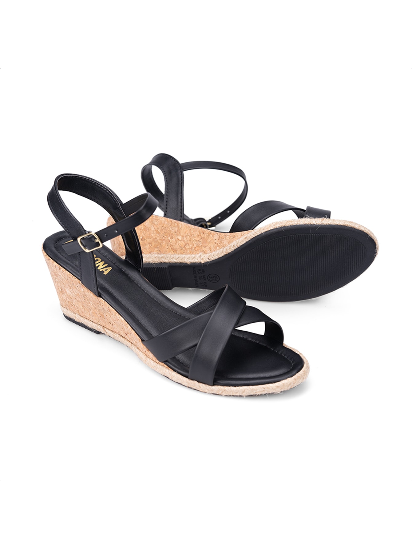Especial DomidonaSandália Feminina Anabela Salto Cortiça Tiras Simples Preta