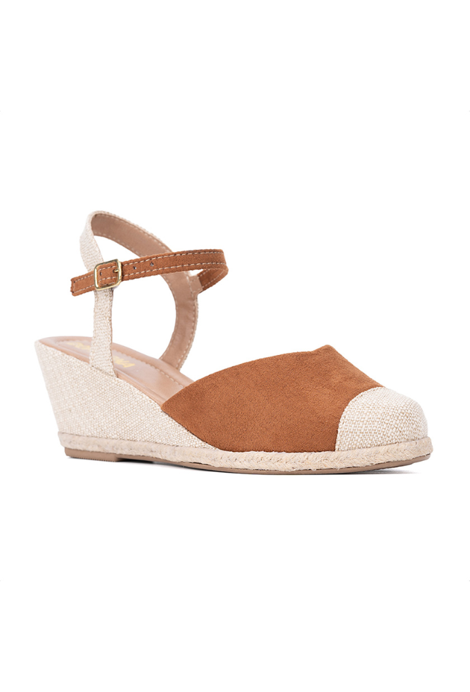 Sandália Feminina Caramelo Anabela Fechada Estilo Palha
