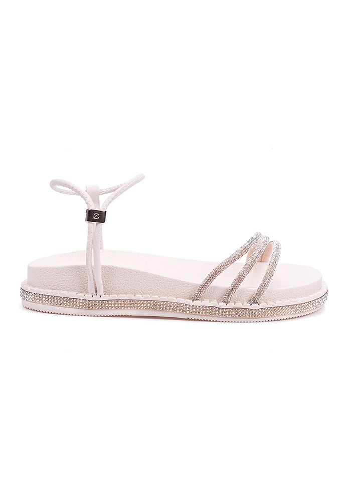 Sandália Feminina Flatform Infantil Calce Fácil Com Strass Off White
