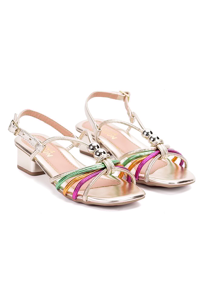 Sandália Feminina Infantil De Tiras Saltinho Baixo Pérolas Colorido