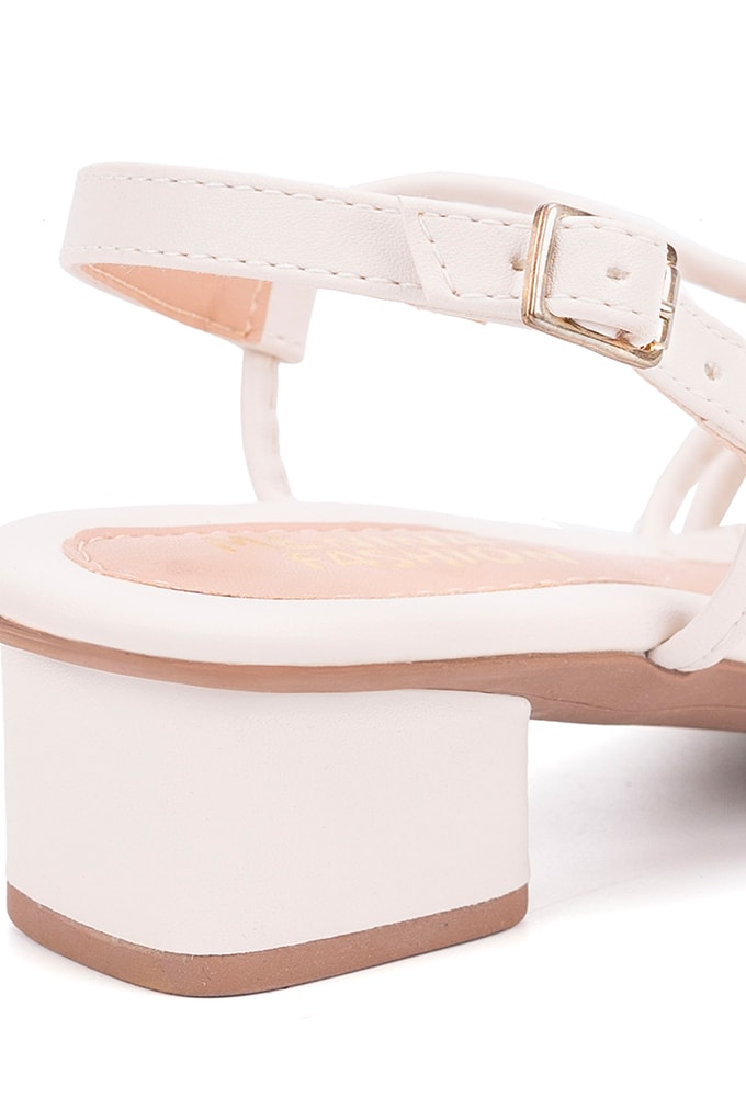 Especial DomidonaSandália Feminina Infantil De Tiras Saltinho Baixo Pérolas Off White