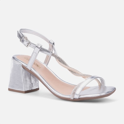 Sandália Infantil Tiras Com Strass Salto Curto Bloco