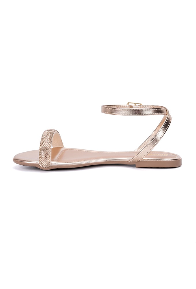Especial DomidonaSandália Feminina Rasteira Bronze Tira Adornada De Strass