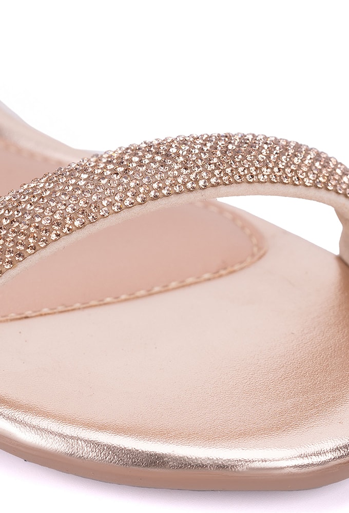 Sandália Feminina Rasteira Bronze Tira Adornada De Strass