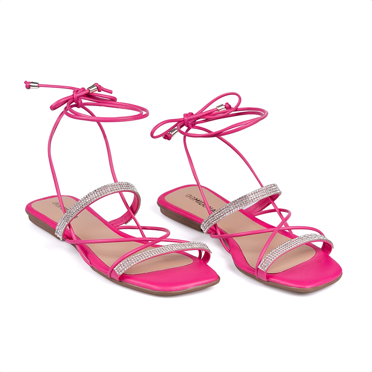 Especial DomidonaSandália Feminina Rasteirinha Amarração Tiras De Strass Pink