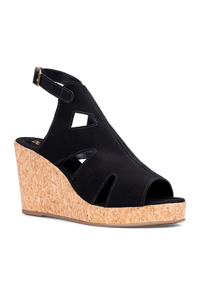 Especial DomidonaSandália Feminina Salto Amadeirado Estilo Anabela Preta