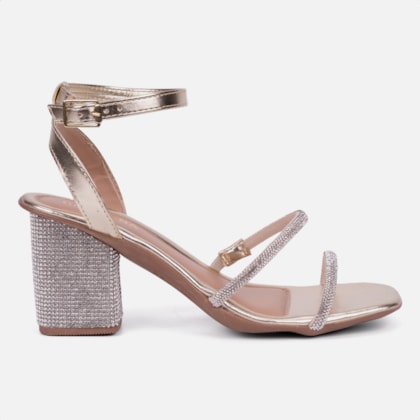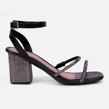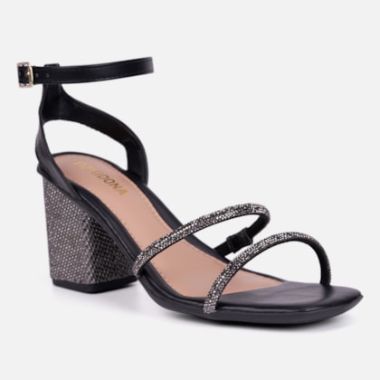Sandália Feminina Salto Bloco Com Strass Tira Brilhantes