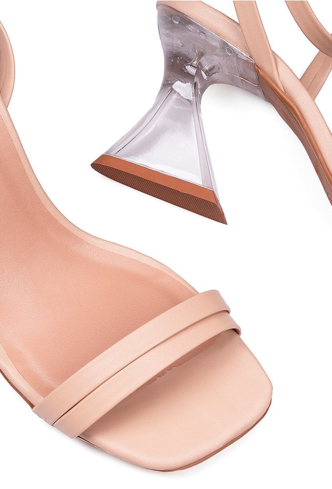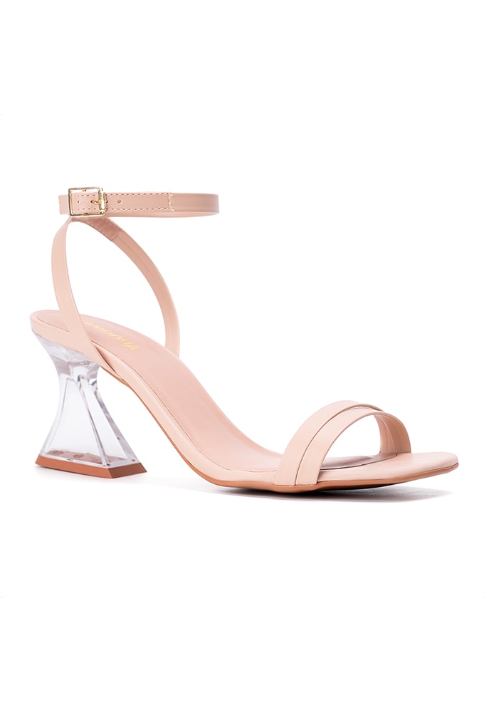 Sandália Feminina Salto Transparente Cristal Tira Tornozelo Nude
