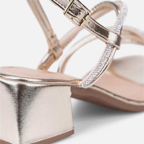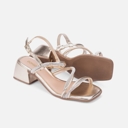 Especial DomidonaSandália Feminina Tiras De Strass Cruzadas E Salto Médio Dourada
