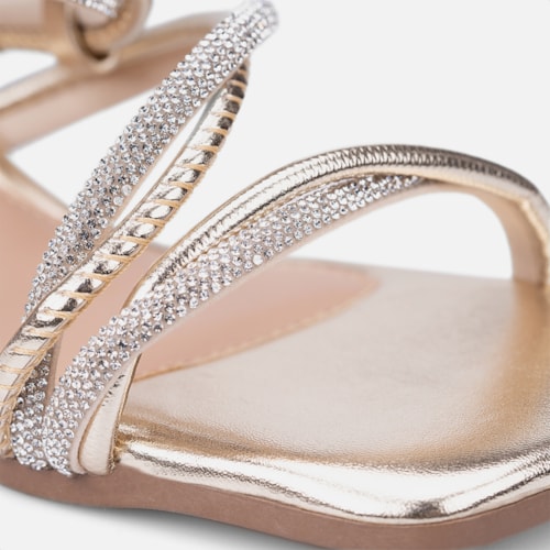 Sandália Feminina Tiras De Strass Cruzadas E Salto Médio Dourada
