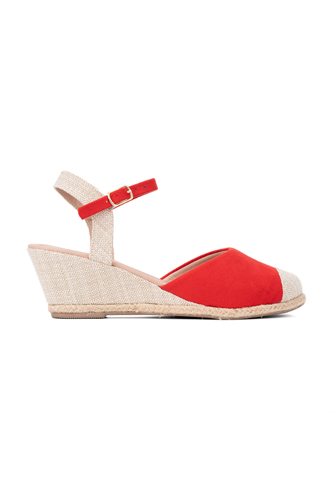 Sandália Feminina Vermelha Anabela Fechada Estilo Palha