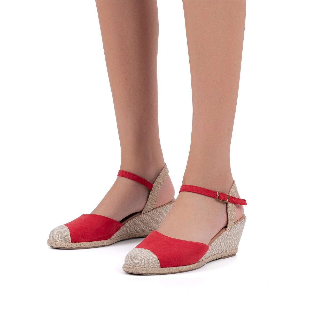 Especial DomidonaSandália Feminina Vermelha Anabela Fechada Estilo Palha