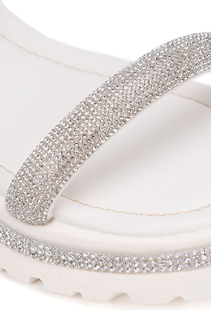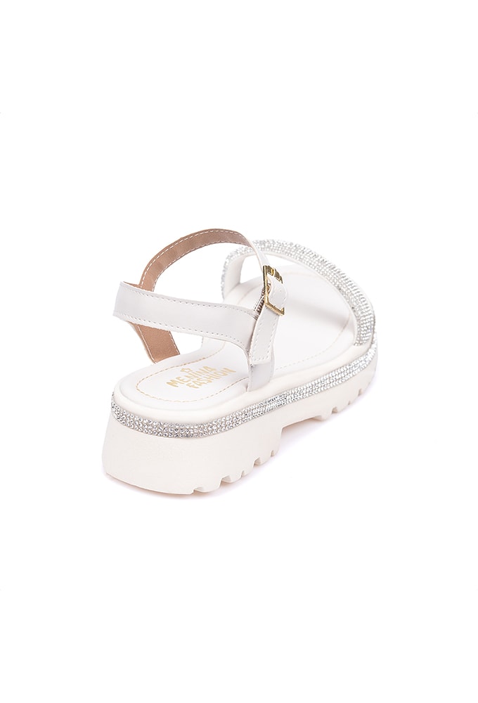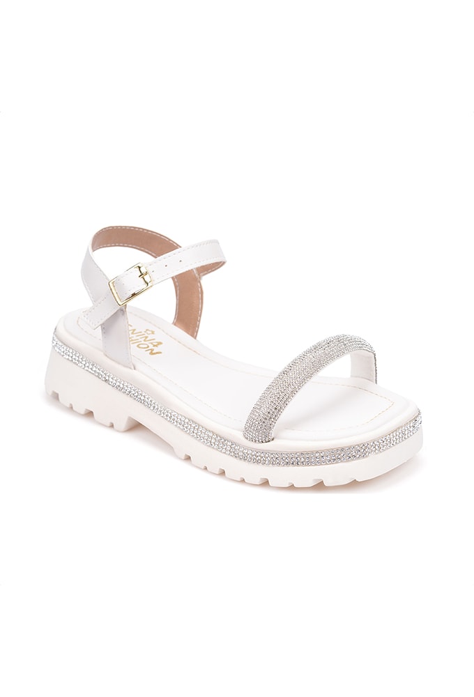Sandália Infantil Off White Salto Tratorado Tira De Strass