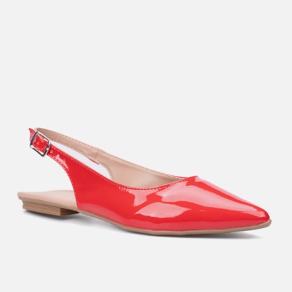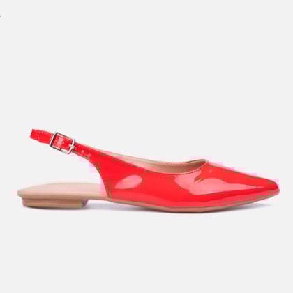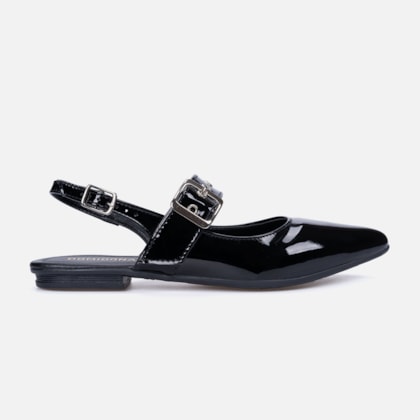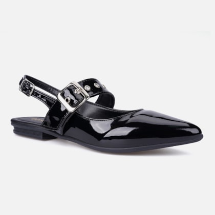 Sapatilha Feminina Bico Fino Verniz Elegante Tira Slingback