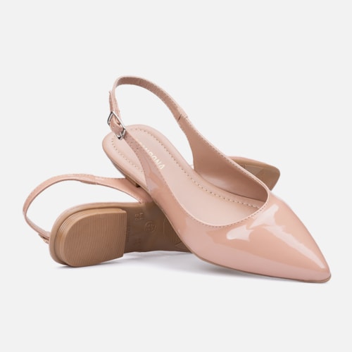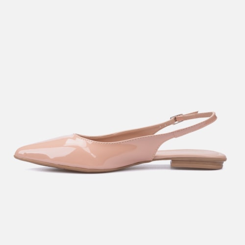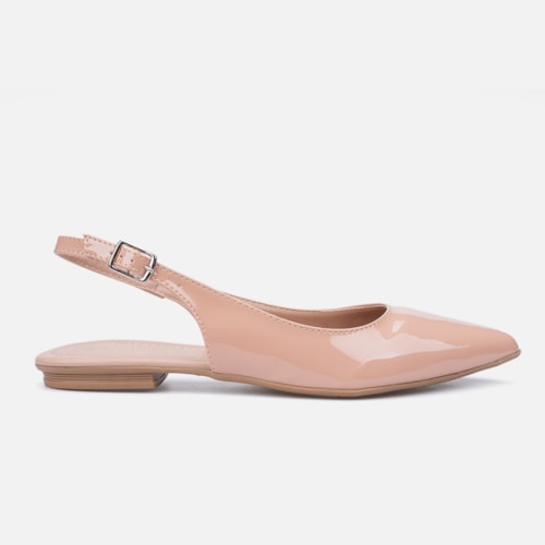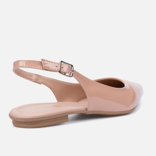 Sapatilha Feminina Bico Fino Verniz Elegante Tira Slingback Nude