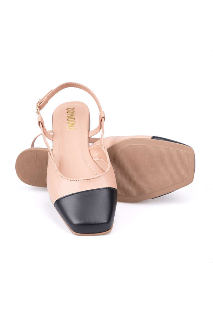 Sapatilha Feminina Nude Slingback Bicolor Bico Quadrado