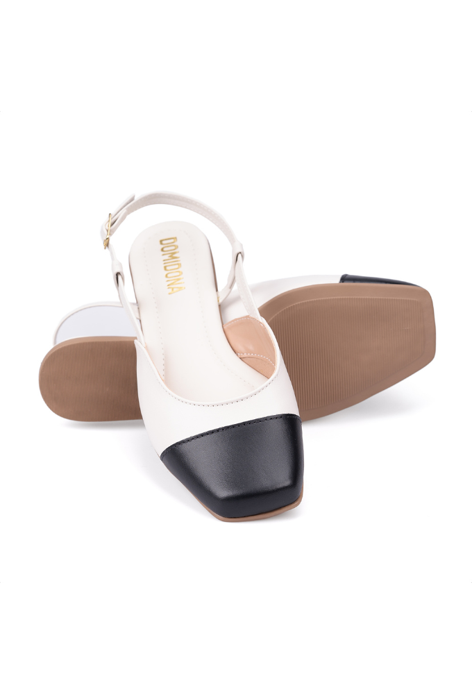 Sapatilha Feminina Off White Slingback Bicolor Bico Quadrado