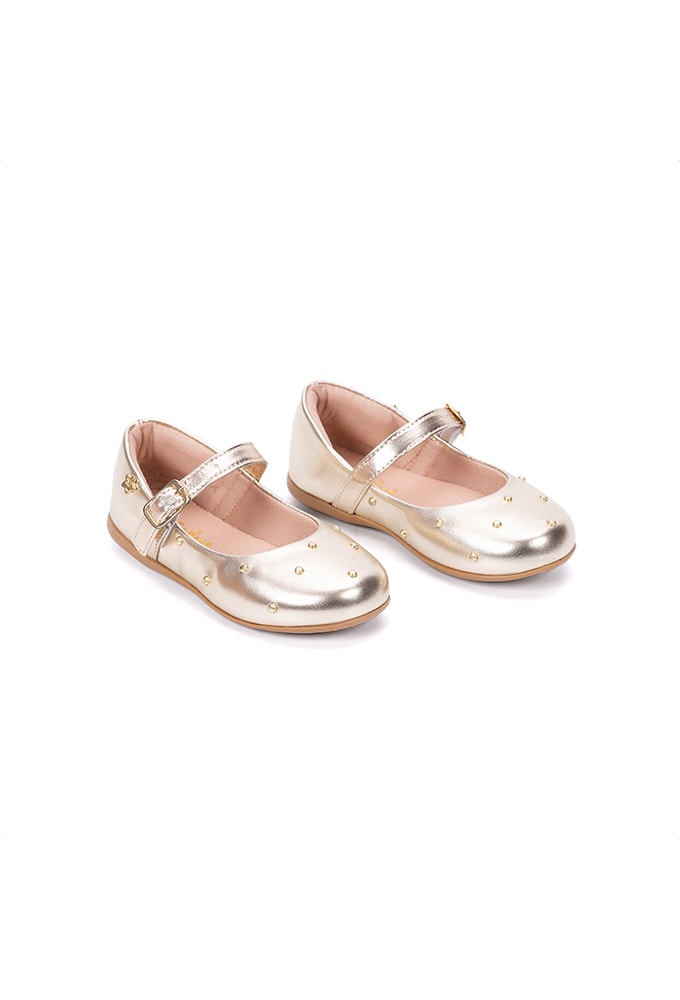 Sapatilha Infantil Dourada Estilo Boneca Tachas Brilhantes