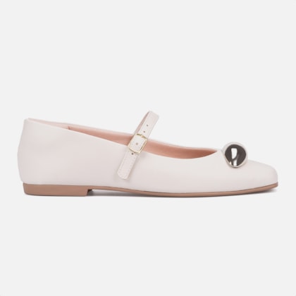 Produzida em material sintético de alta qualidade, a sapatilha oferece durabilidade e facilidade na limpeza. As tachas aplicadas ao cabedal conferem um acabamento sofisticado e delicado, ideal para compor produções elegantes e charmosas.