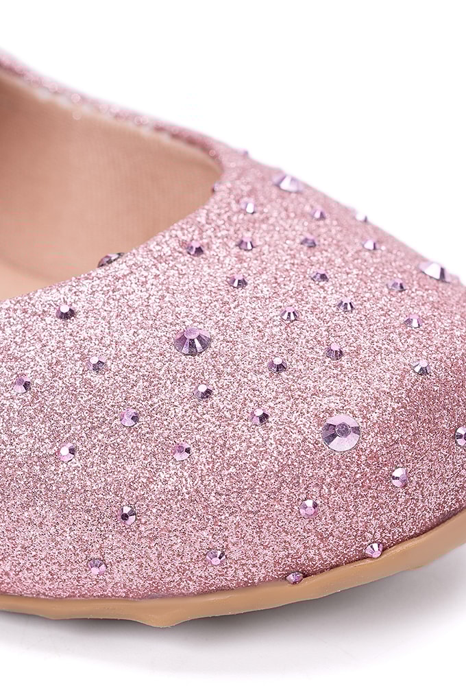 Seu design estilo boneca é complementado pela tira ajustável, que proporciona segurança e conforto, enquanto o acabamento em glitter com spikes adiciona um toque contemporâneo e glamoroso. É uma sapatilha que transforma qualquer produção em algo único e cheio de estilo, ideal para meninas que adoram detalhes marcantes.