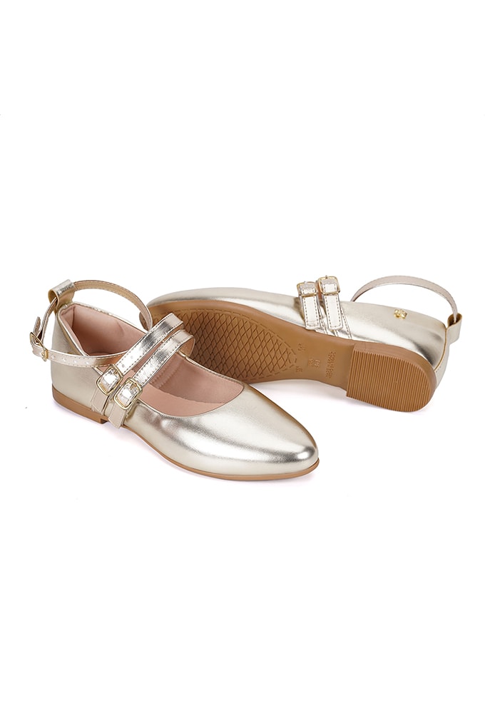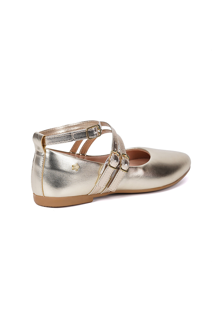 Sapatilha Menina Infantil Dourada Tira No Tornozelo Bico Fino