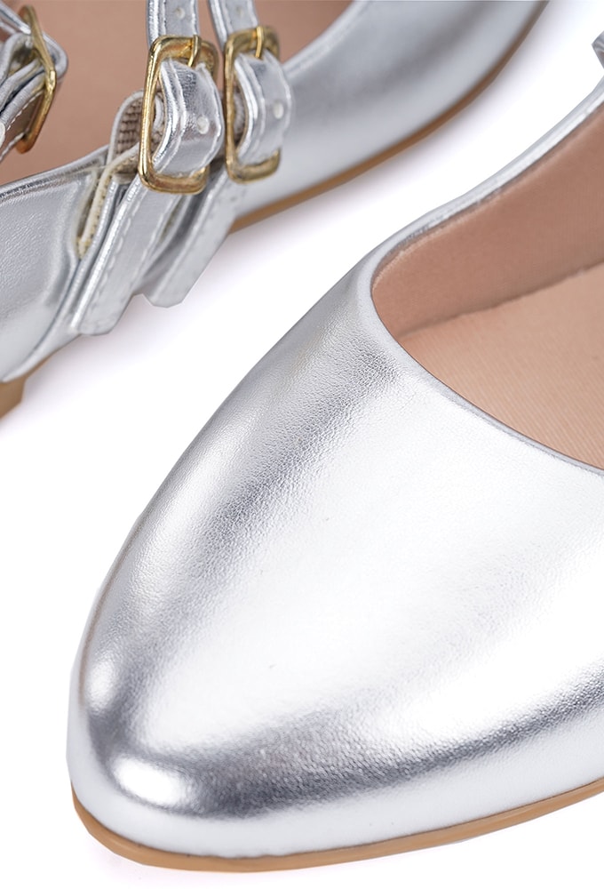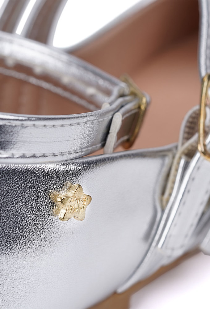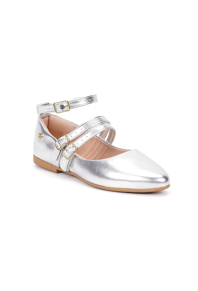 Sapatilha Menina Infantil Prata Tira No Tornozelo Bico Fino