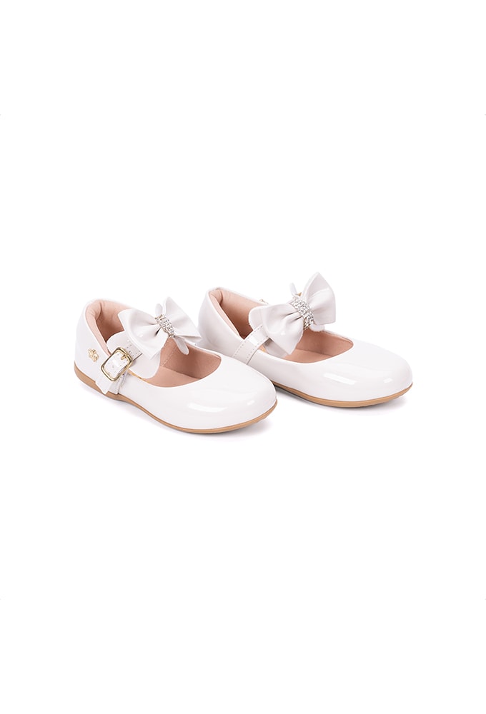 O design atemporal, aliado ao laço delicado e às pedrinhas brilhantes, faz dessa sapatilha uma escolha versátil e encantadora. Seja para momentos formais ou casuais, ela complementa diferentes looks com charme e elegância, permitindo que as meninas expressem seu estilo de forma única.