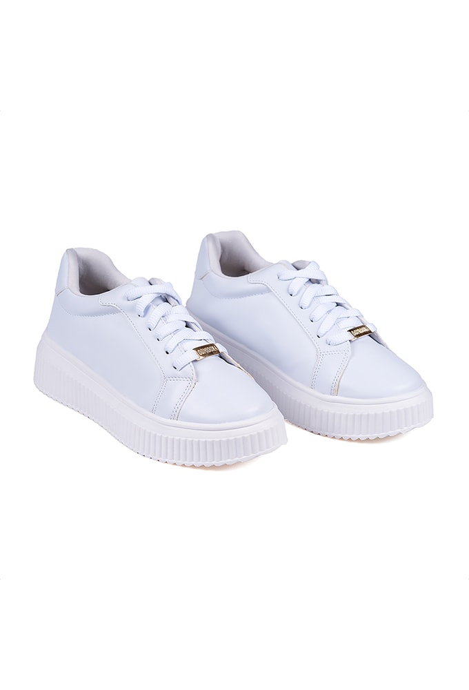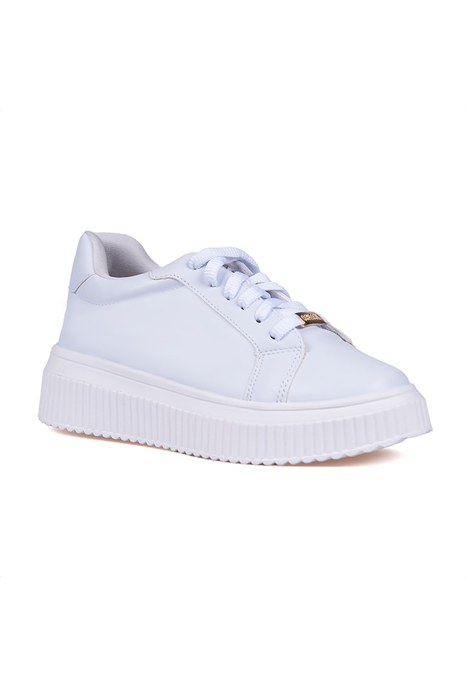 Tênis Feminino Casual Sola Plataforma Tratorada Alta Confort Branco