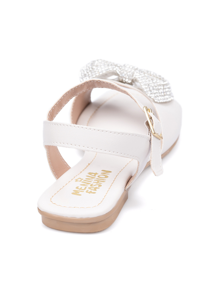 Especial DomidonaRasteira Infantil Off White Bico Quadrado Laço De Strass