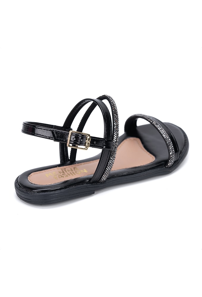 Rasteirinha Fashion Preta Infantil Tiras Duplas De Strass