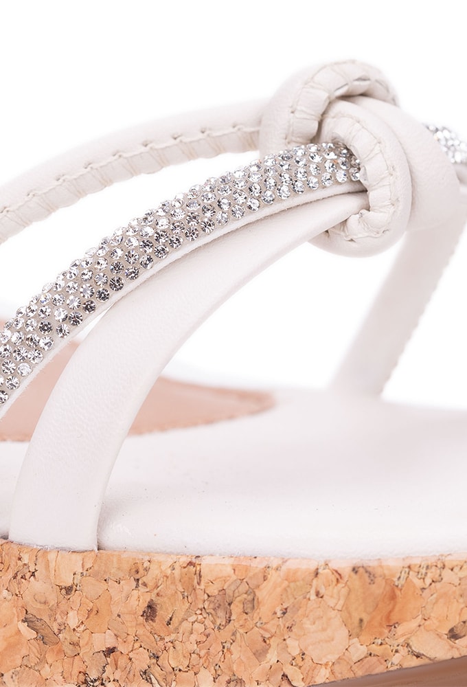 Especial DomidonaSandália Anabela Infantil Off White Tiras Em Nó Com Strass
