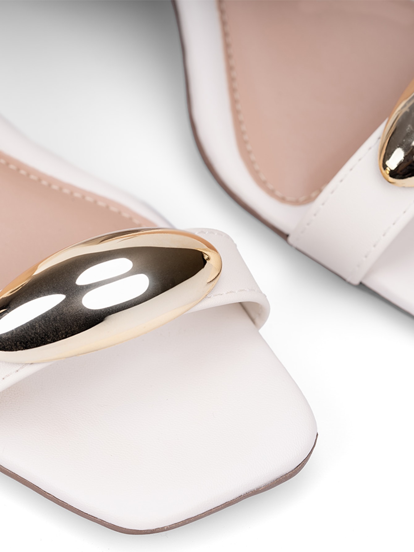 Sandália Feminina Off White Salto Alto Tira Com ABS Metalizado
