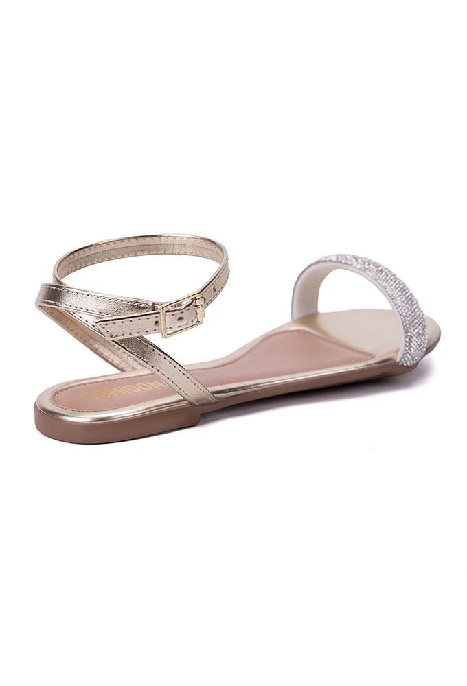 Especial DomidonaSandália Feminina Rasteira Dourada Tira Adornada De Strass
