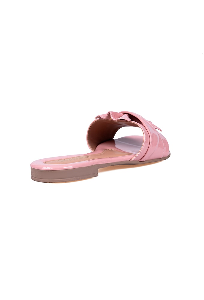 Sandália Feminina Rasteira Enfeite Laço Rosa
