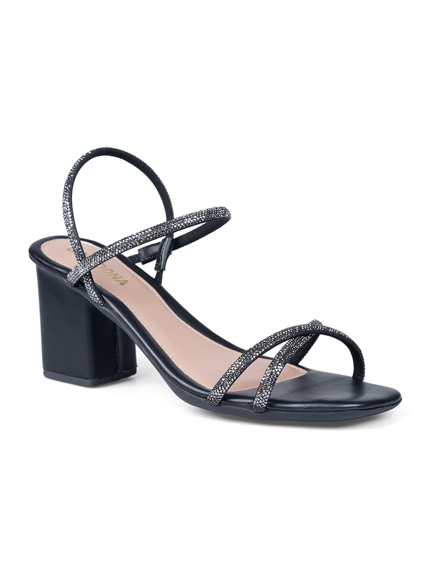 Esta sandália de salto bloco foi feita para acompanhar a mulher moderna em qualquer ocasião. As tiras delicadamente adornadas com strass envolvem os pés com leveza, proporcionando uma sensação de bem-estar que dura o dia inteiro. Seu design sofisticado valoriza cada passo, permitindo que você se sinta segura e confiante.