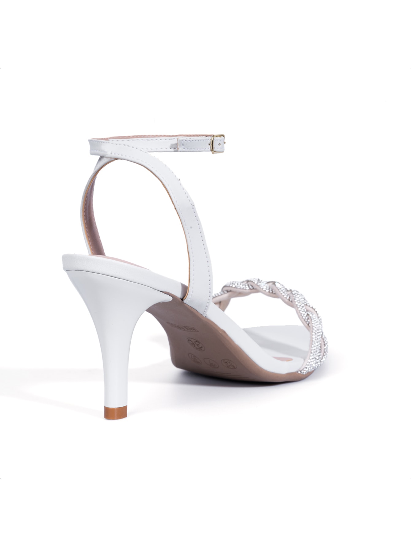 Sandália Feminina Salto Fino Com Tira Em Strass Brilhante Off White